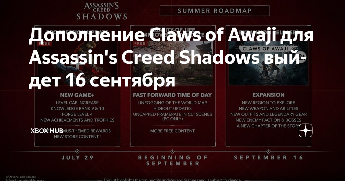 Ubisoft представила обновленный план развития Assassin`s Creed Shadows, объявив, что дополнение “Когти Авадзи” (Claws of Awaji) выйдет 16 сентября. Оно будет бесплатным для тех, кто предзаказал игру, но его также можно будет купить отдельно, если вы пропустили период предзаказа.