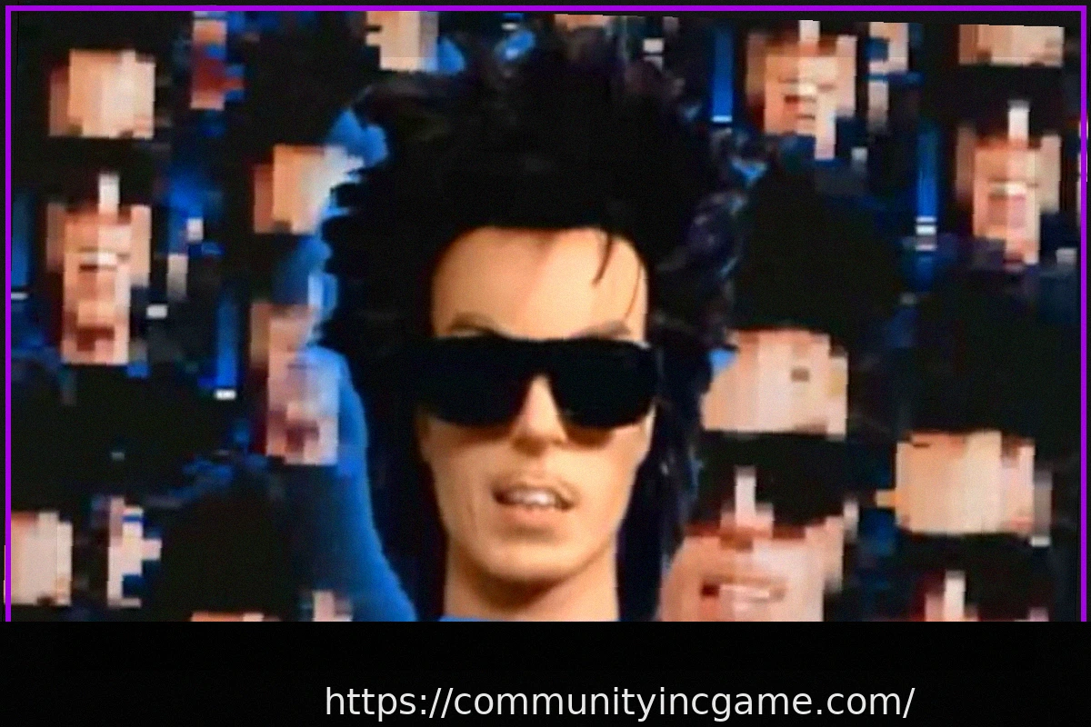 At its core, Blippo+ presents itself as a whimsical full-motion video (FMV) broadcast emanating from an otherworldly source. The primary visual focal point is a distinct, hovering head, adorned with sunglasses, enveloped by a myriad of pixelated, identical reproductions of itself.