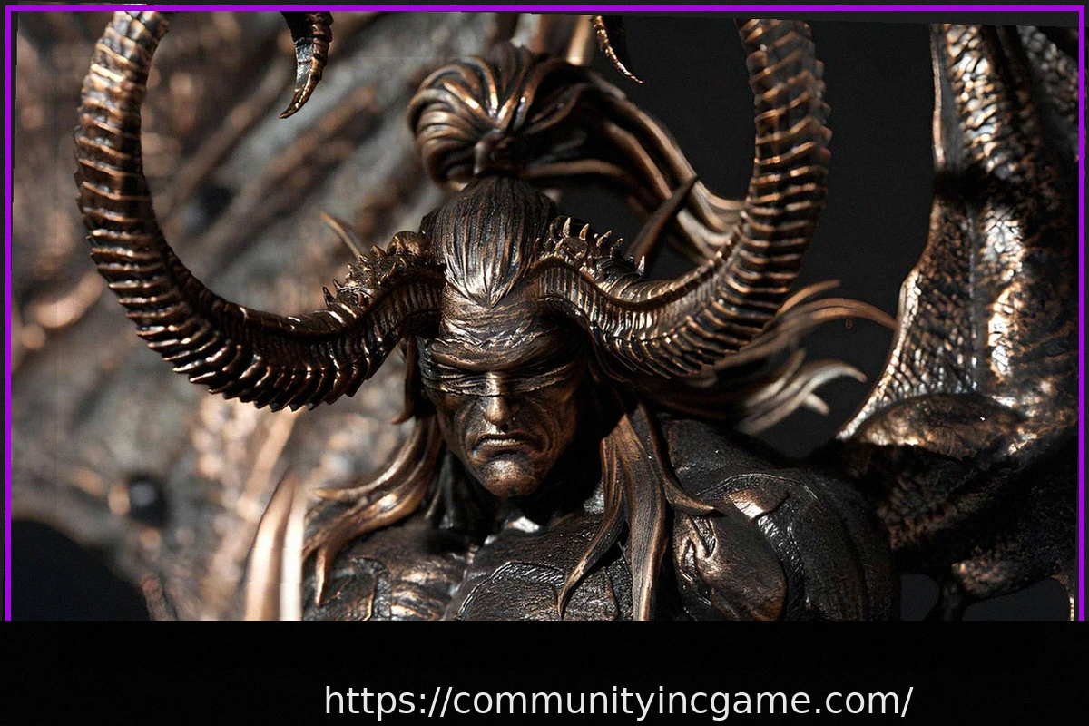 Скульпторам удалось тщательно воссоздать каждую деталь, от рельефа мускулатуры Иллидана до его культовых крыльев и Клинков Аззинота. Текстура обмоток на руках и складки брони проработаны с исключительной точностью.