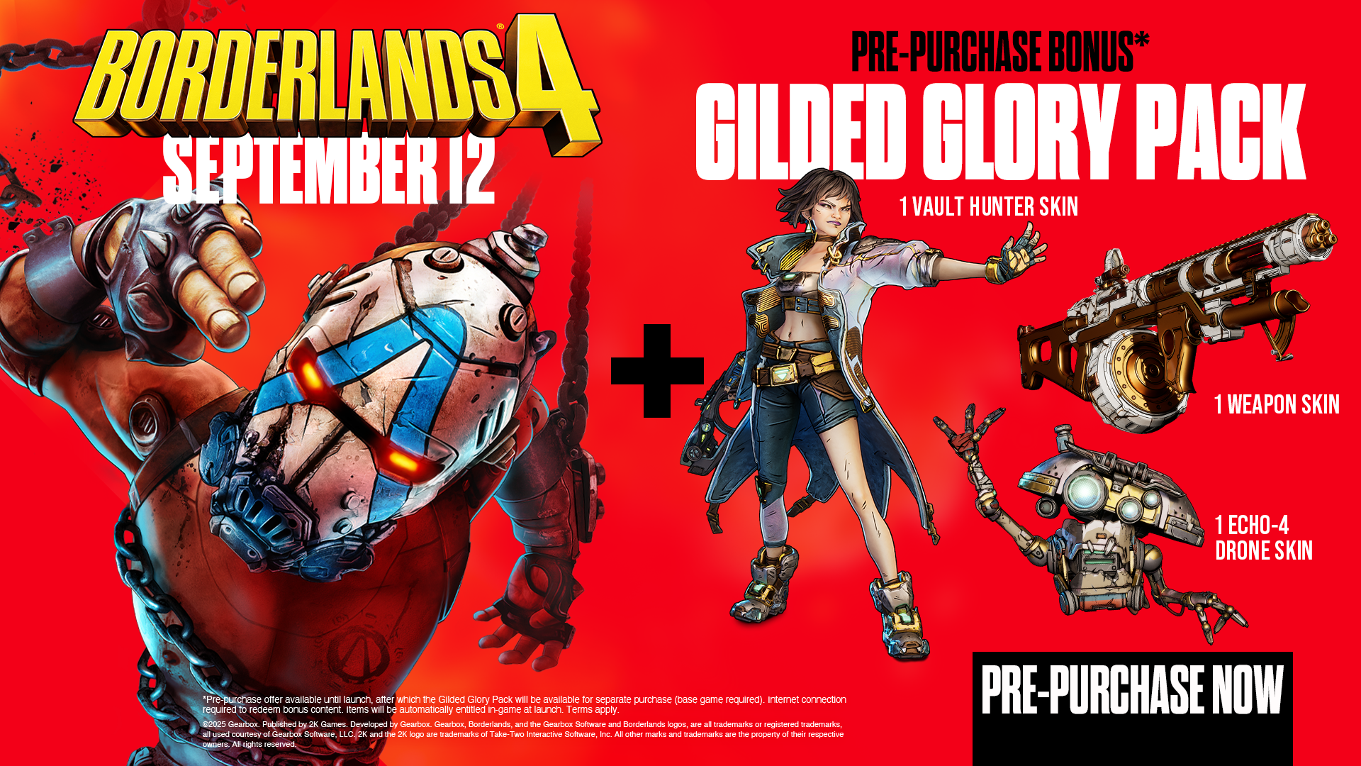 Regarding the Gilded Glory Pack, a pre-order bonus featuring four legendary weapons and a cosmetic head, the studio has modified its loot pools to prevent these items from appearing in standard chests. Additionally, an issue with the Reward Center not functioning correctly when claiming Gilded Glory Pack items has been resolved.