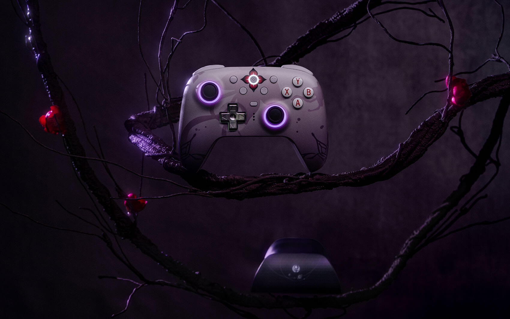 8BitDo is also offering a Collector`s Bundle, which includes four stick caps, a themed hardshell carrying case, temporary tattoo stickers, and a glittery coaster featuring Evernight.