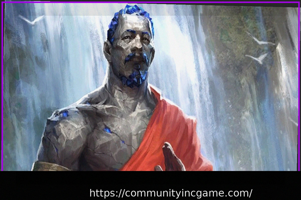 Визуально игра впечатляет детализированным искусством портретов персонажей, например, ярким изображением монаха из элементарного камня, медитирующего в безмятежности у водопада, что демонстрирует богатую эстетику, дополняющую ее сложный геймплей.