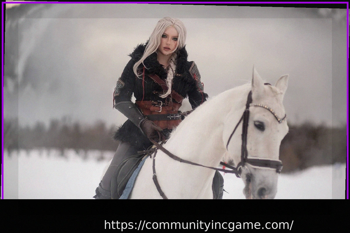With the silver sword Zireael in hand, clad in full witcher gear, Elena mounted a loyal steed (likely not the legendary Kelpie, who was black) and set off on an imagined adventure to confront monsters.