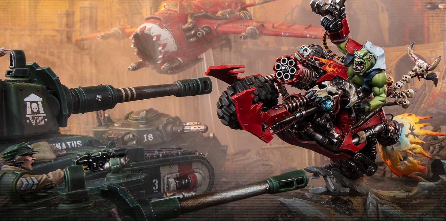 Главным релизом станет стартовый набор “Armageddon” — крупнейший в истории Warhammer 40,000. Он будет включать множество новых миниатюр Космодесантников и Орков, обновленные правила и расширенный лор. Были показаны новые модели Заступника из отряда Космодесантников и Орк-бойза.